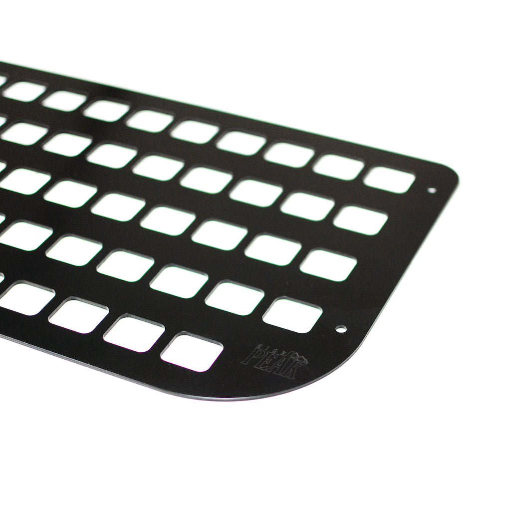 Please notethis Panel is for 2018+ SZ4/SZ5 "Passenger" Jimny models fitted with the regular "Passenger" tailgate trim panel. If you have a 2021+ LCV "Commercial" Jimny model (or you have installed the LCV Tailgate Trim Panel), please see the HIGH PEAK Tailgate Molle Storage Panel designed specifically with this model's emergency escape panel in mind.