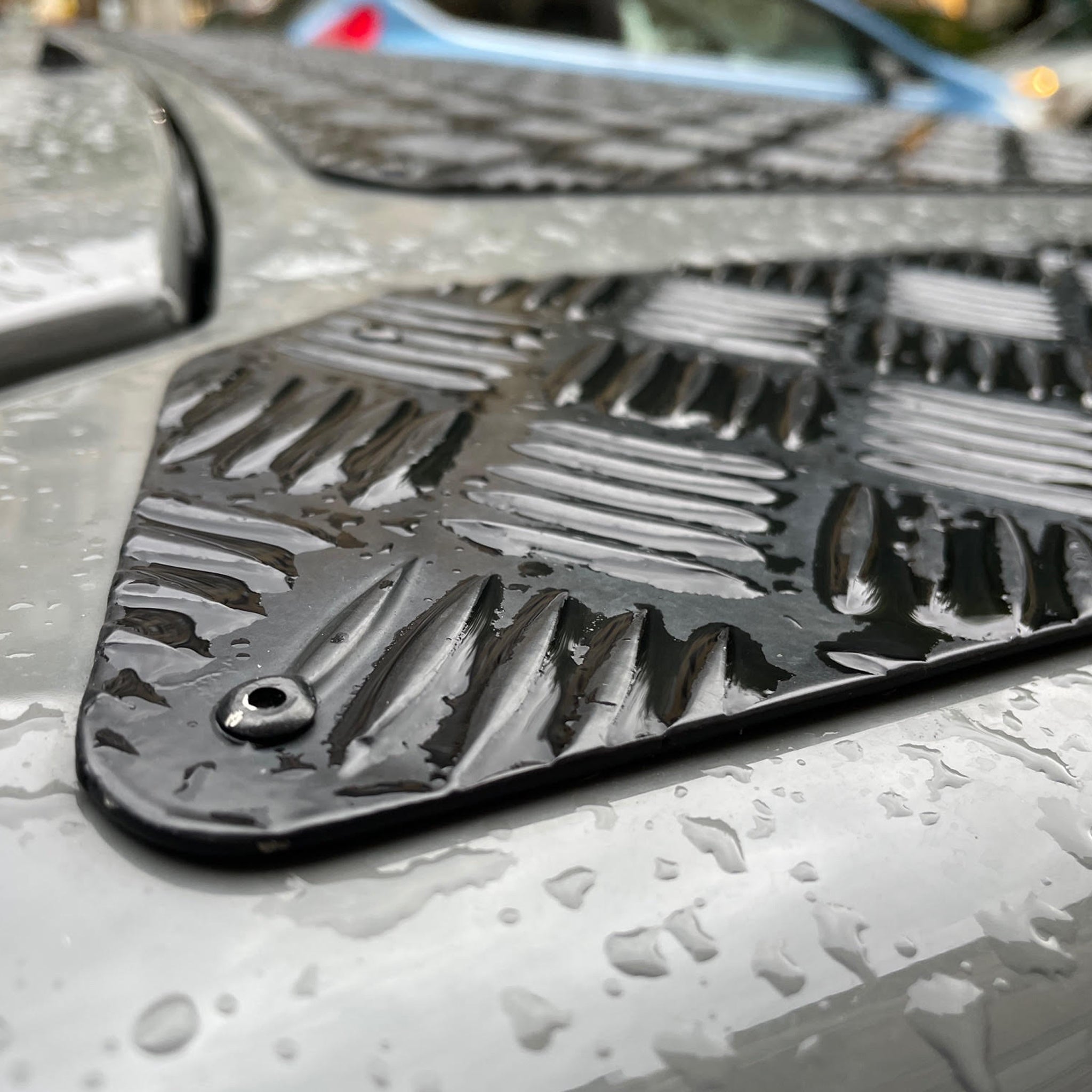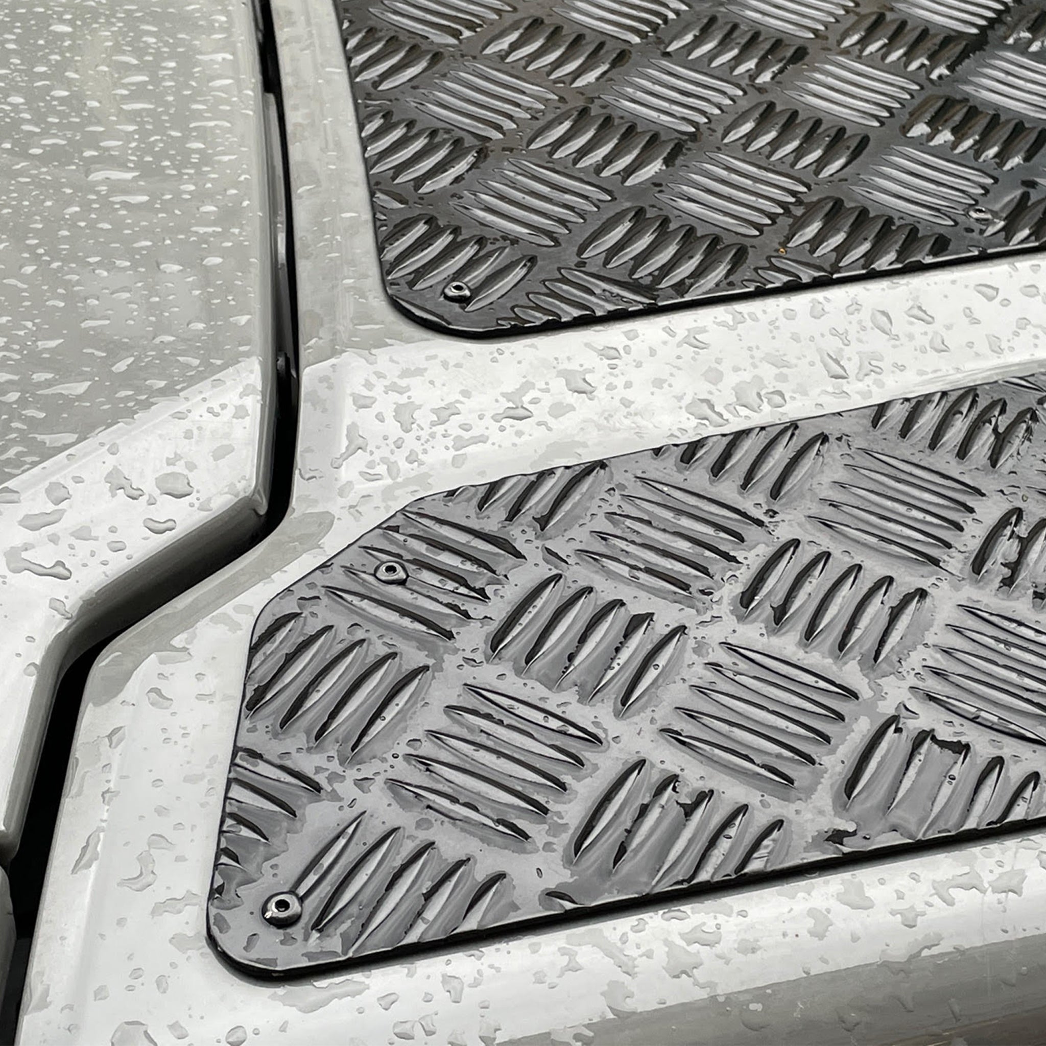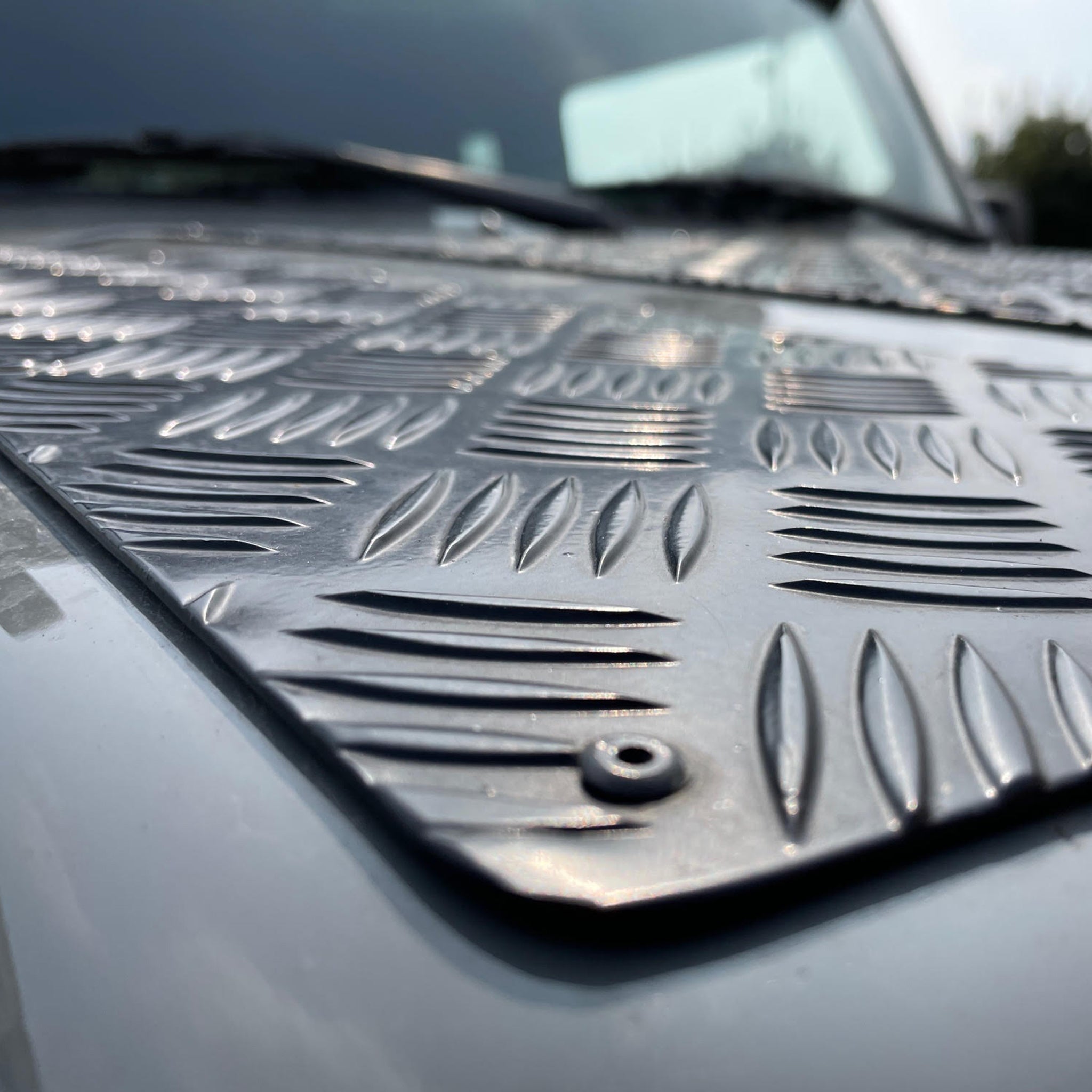 This rugged three-piece Bonnet Chequer Plate Set is manufactured from aluminium and is finished in a tough, black powder coating.