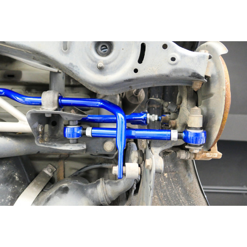 Toe arms allow for fine-tuned adjustments to the rear toe in/out setting of the vehicle. It helps to raise straight line stability and road control. HARDRACE Rear Toe Control Arms are made with high-strength steel alloys to offer high durability, strength and yet remain light-weight.