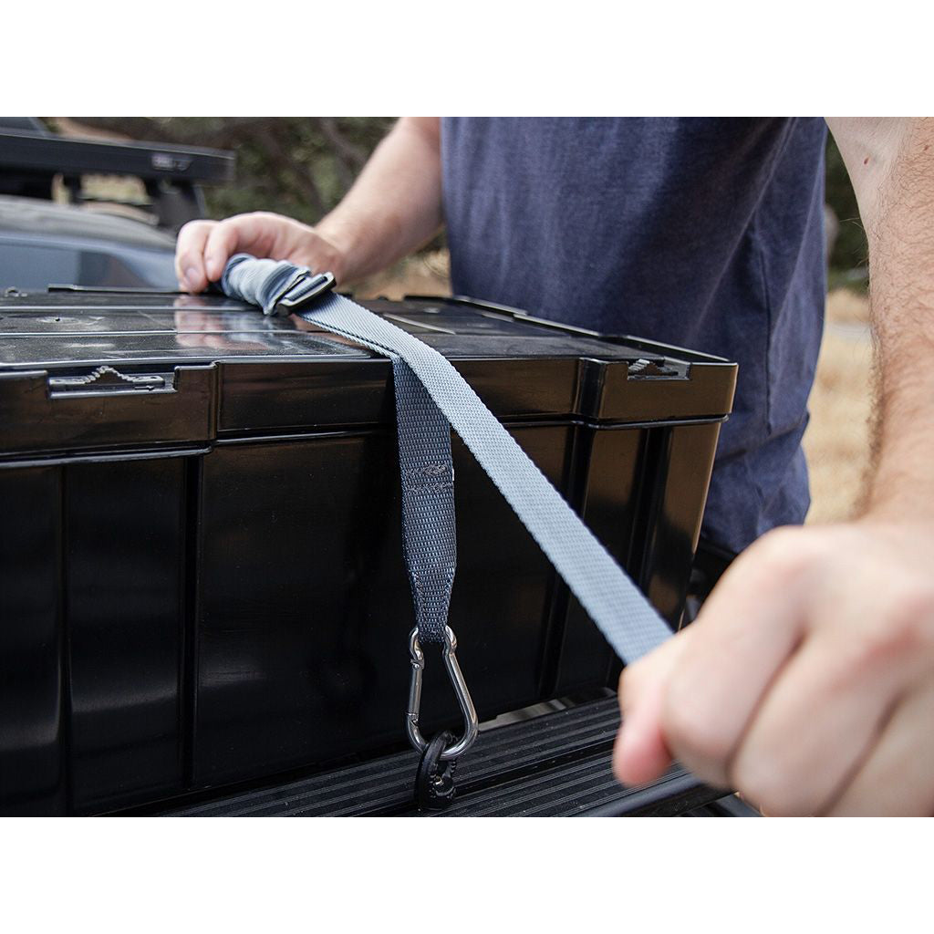 Secure your cargo and gear with the more compact Stratchit Shorties. Stratchit Shorties are the ultimate efficient tie-downs with stretchy ratcheting performance in a lightweight, durable strap that is 507mm / 20" shorter than the regular Stratchit. Keep your rack clean and organised with the cinching hook and loop strap that neatly stows away excess strap length. Replace all of your cumbersome ratchet straps and stop wrestling with fixed length bungee cords. Stratchit Shorties have all the benefits of a compact ratchet strap and bungee cord combined.