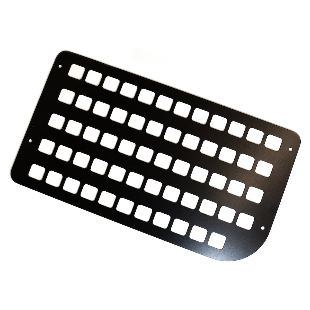 This HIGH PEAK Tailgate Molle Storage Panel affixes to the Jimny's plastic tailgate interior trim panel and allows for a wide array of items to be attached to it in a manner of your choosing. Whether you're going camping, hiking, mountain biking or anything else in between, the Molle Storage Panel can cater for you.